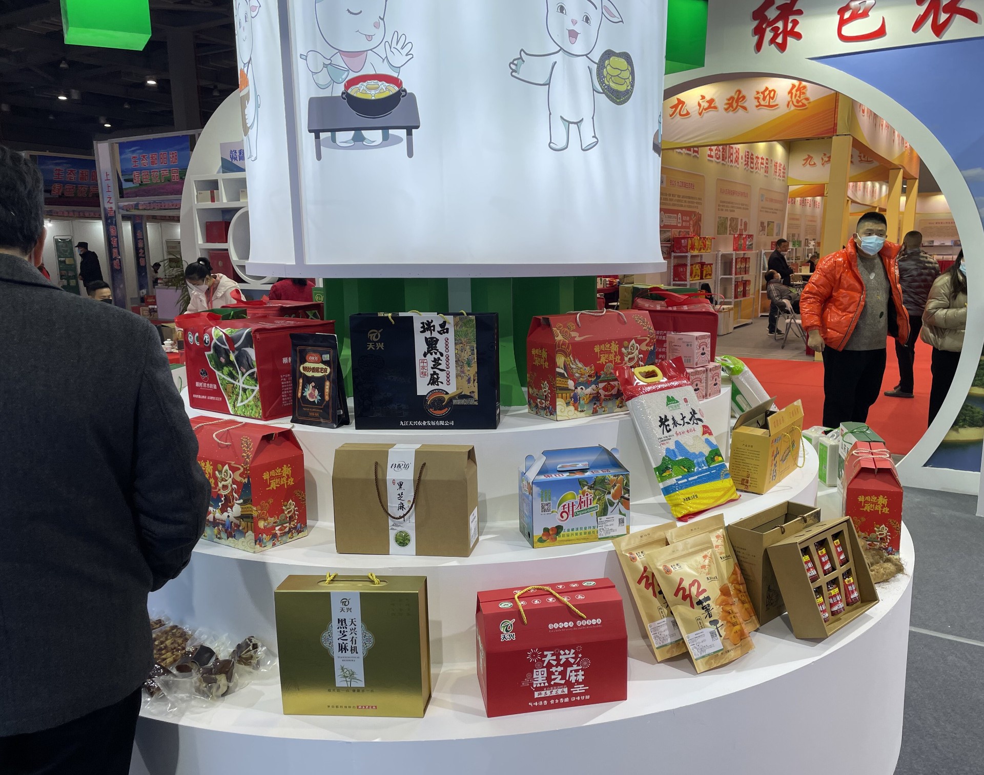 九江天兴农业黑芝麻系列产品亮相农博会,瑞昌黑芝麻粒粒饱满、品质上乘、健康有机、放心食用。我司出展的有谷配坊黑芝麻丸、有机炒香黑芝麻、天兴黑芝麻粉、天兴黑芝麻油等。