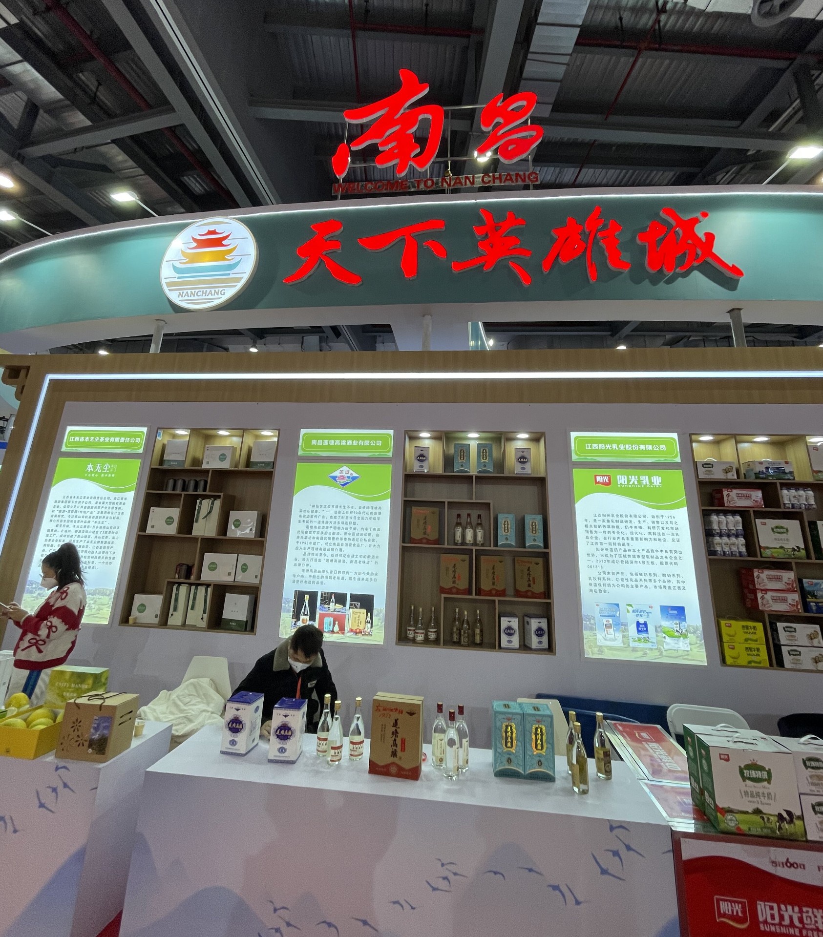 现场人比较多在南昌绿地国际博览中心,本届展会吸引了多家企业来参展,尽情展示我省的特色农产品及食品,展品涵盖绿色食品、有机食品、地理标志产品等,如金丝皇菊、阳光牛奶、崇仁麻鸡、军峰山茶、新余蜜桔、宜春大米、莲塘高梁酒、临川葛根粉以及九江天兴农业的鄱阳湖黑芝麻等省内名品。